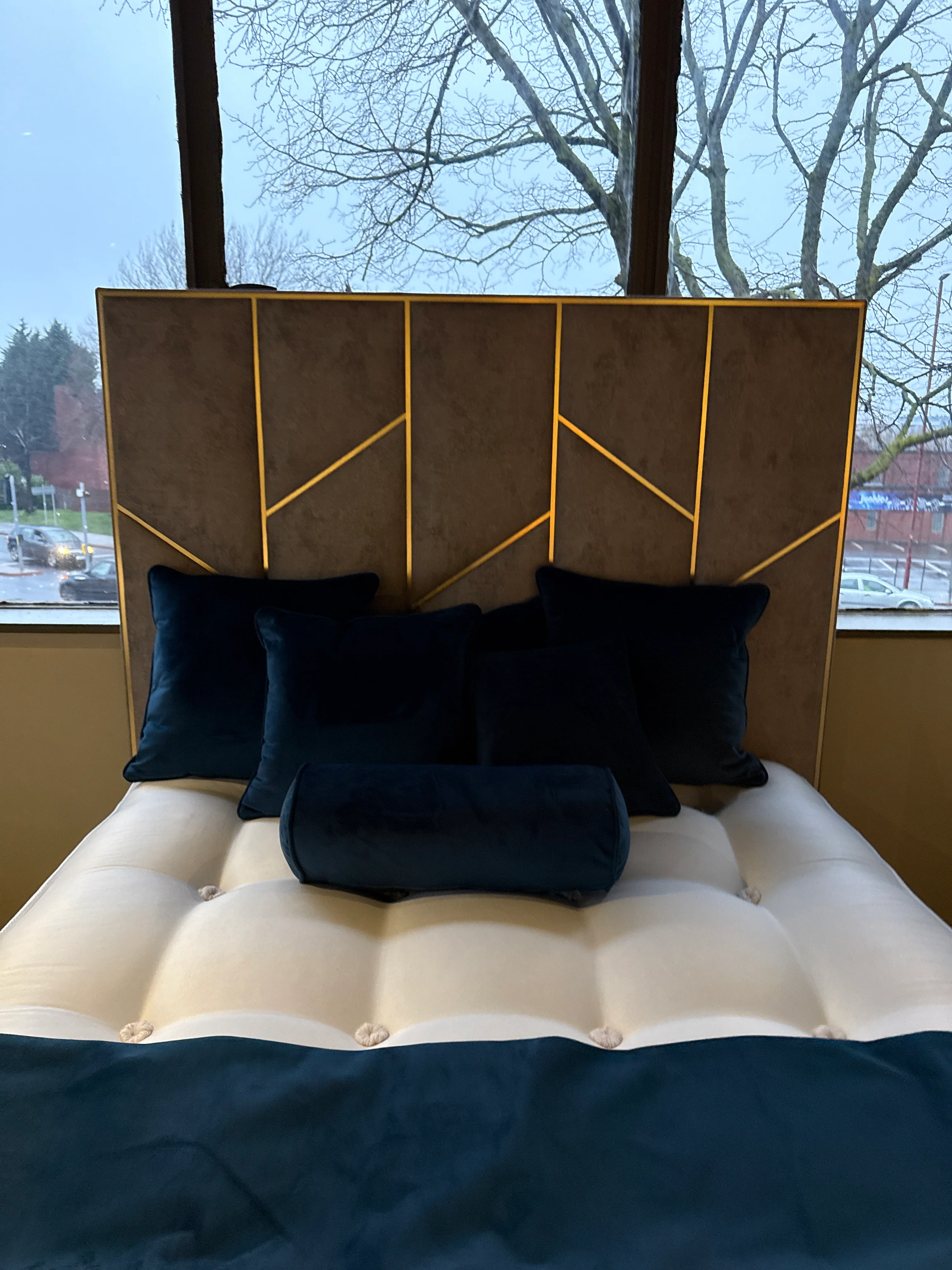 Elevate your bedroom with the striking Chelsea Bed. This upholstered bed boasts a unique metal zigzag trim, adding a touch of contemporary flair and sophistication to any decor. The high-quality upholstery ensures both comfort and durability, creating a cozy and inviting sleep environment. The Chelsea Bed is available in various premium fabrics and sizes, allowing you to customize it to match your personal style. Its eye-catching design and superior craftsmanship make it a standout piece in any bedroom setting. Experience the perfect blend of modern elegance and luxurious comfort with the Chelsea Bed.
